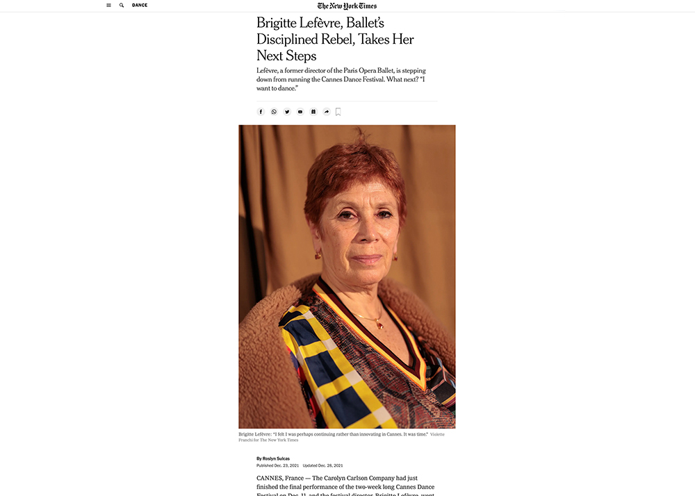 Brigitte Lefèvre, Ballet’s Disciplined Rebel, Takes Her Next Steps (online article published on the 12/23/21 and print issue on the 12/26/21 and 12/29/21)